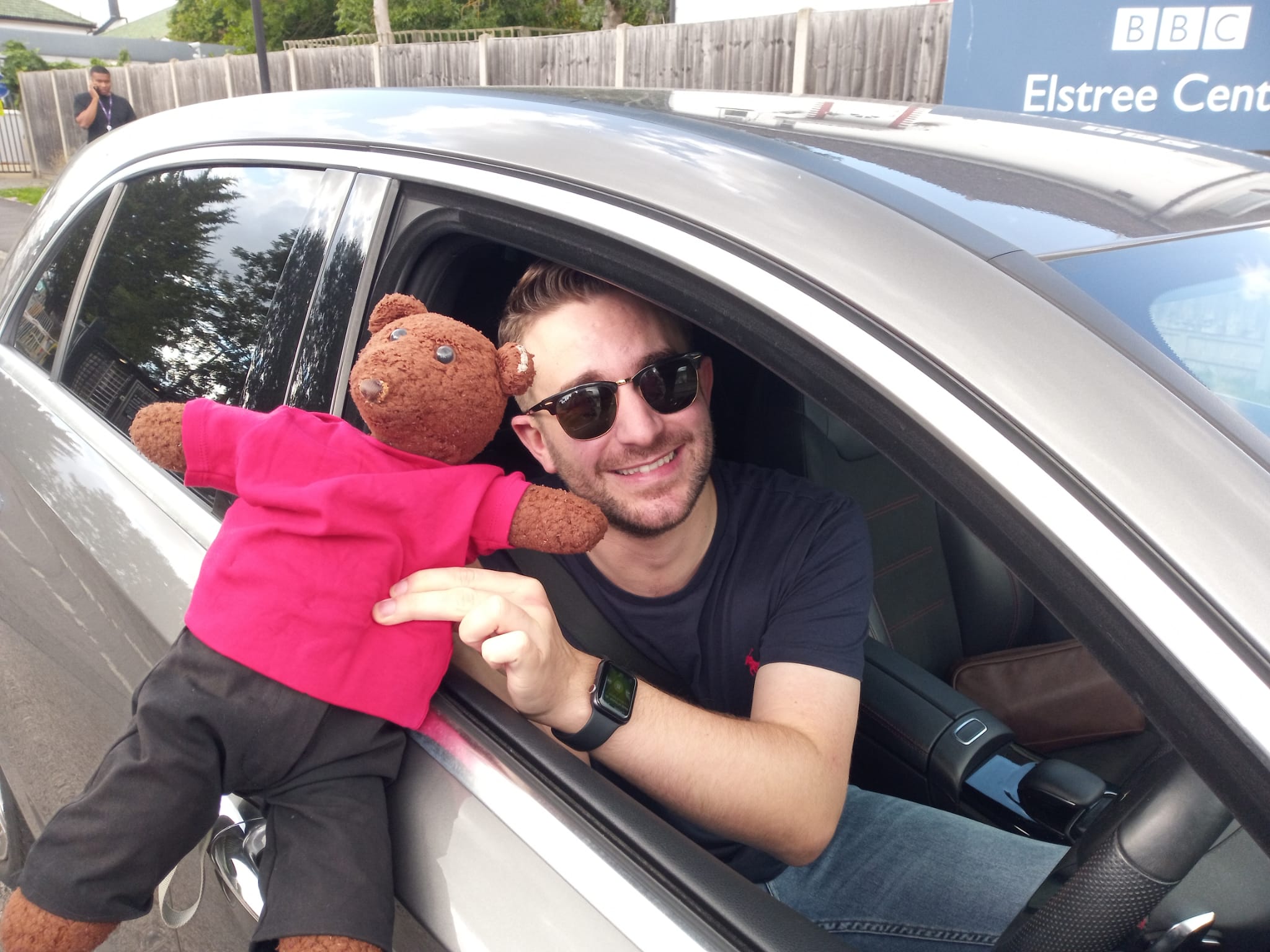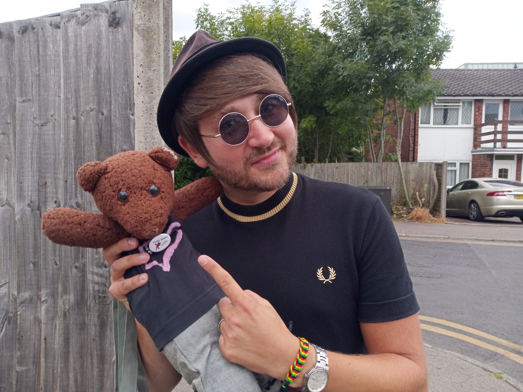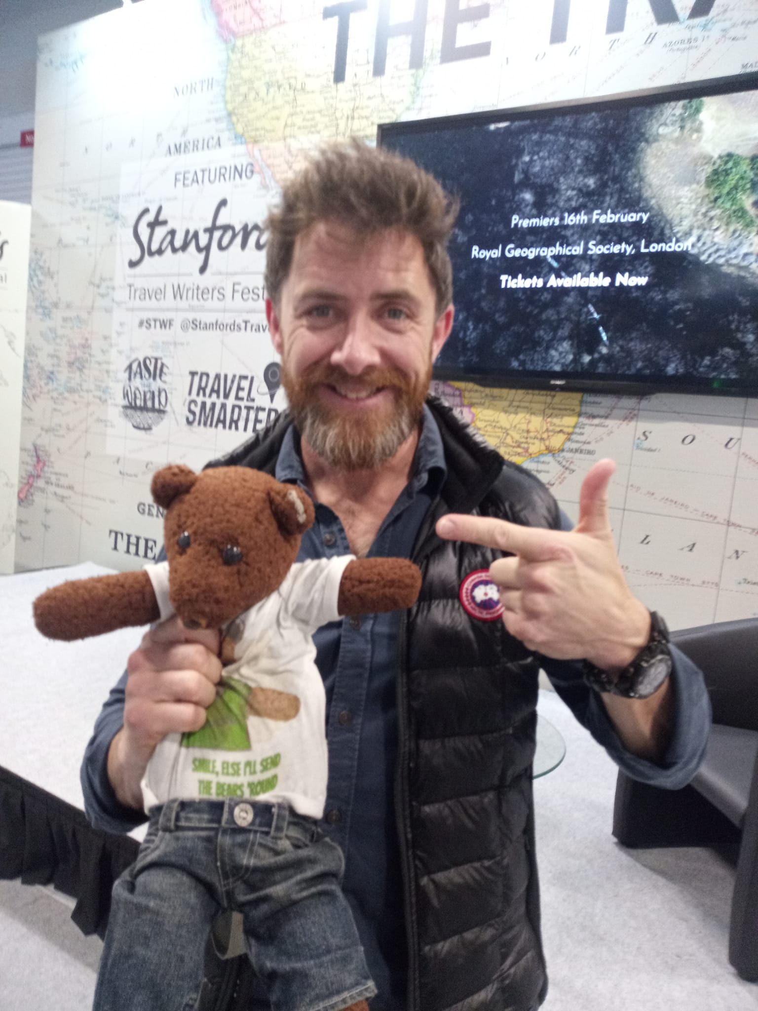 One surely imagines that these lovely human celebrities were very happy to meet such a smart, groovy, not to mention cool, dude, celebrity teddy bear and to hold him and take photos with him!