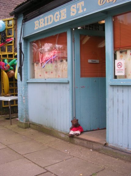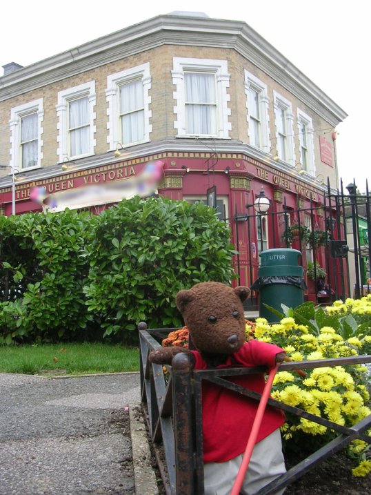 Bearsac Eastenders Albert Sq. Garden Toy stall Albert Square market Bearsac in playground outside The Arches garages Bearsac outside the Queen Vic Albert Square Bearsac outside MinitMart Bearsac on Arthur;s Bench in Albert Square Bearsac with Beale’s fruit. Bearsac on Charlie Slater’s taxi-cab. Bearsac sitting outside Kathy’s Cafe Bearsac with Joe Swash (Micky) outside the car lot Bearsac and Kara Tointon by Albert Square sign Bearsac by Albert Square The very lovely Kara Tointon took me onto the set of Eastenders some years ago, when it was no longer open to the public. She and Joe Swash photographed me around Albert Square! Thank you, Kara and Joe. Bearsac (now living in Tanzania) x x Get email notifications of updates Signup now and receive an email once I publish new content. Thank you for subscribing. Something went wrong. I agree to have my personal information transfered to MailChimp ( more information ) We will never give away, trade or sell your email address. You can unsubscribe at any time.