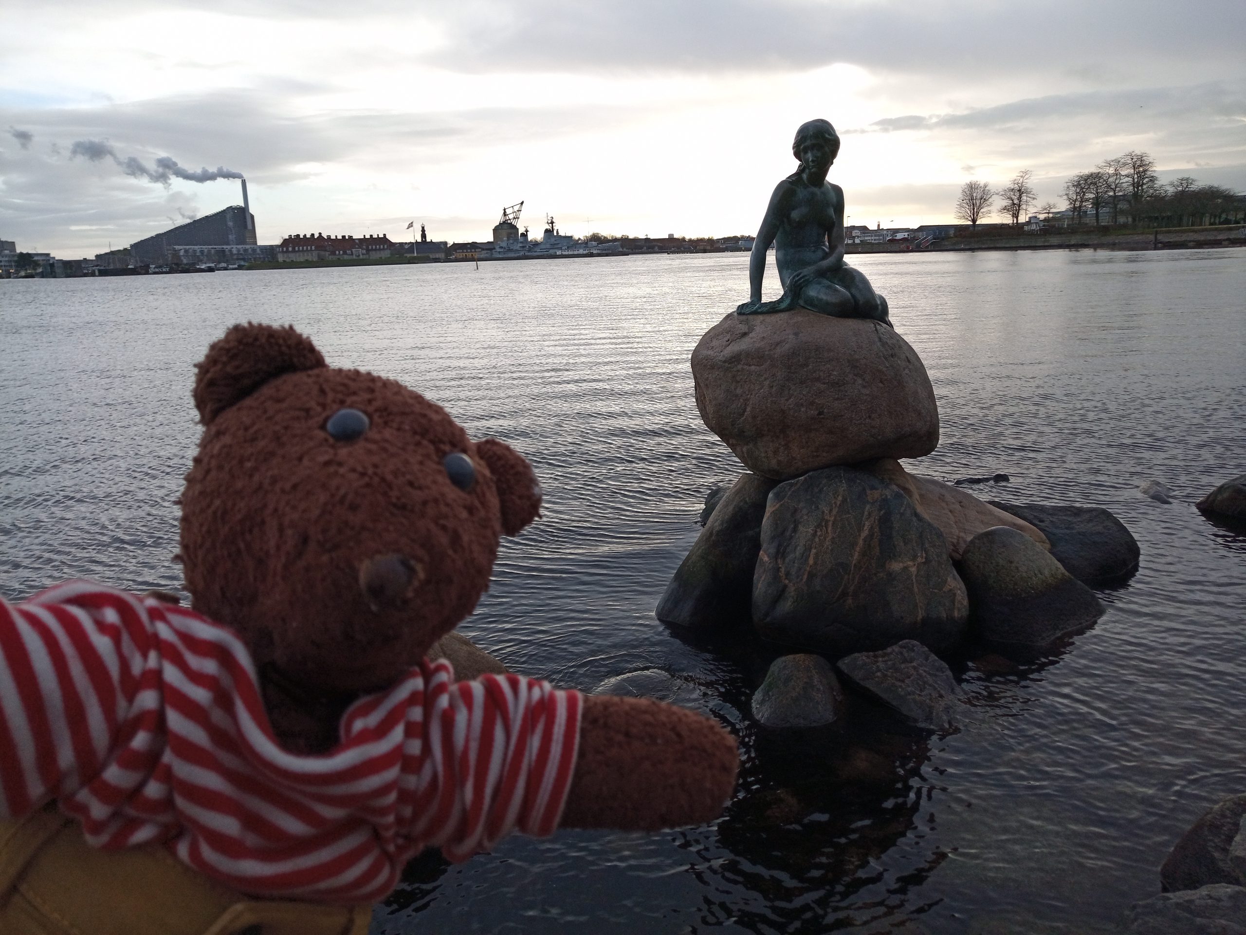 Prior to getting a train from Copenhagen to Sweden for a house-sitting booking, we ran around Copenhagen. The Little Mermaid had the honour of meeting the world’s cutest teddy bear!