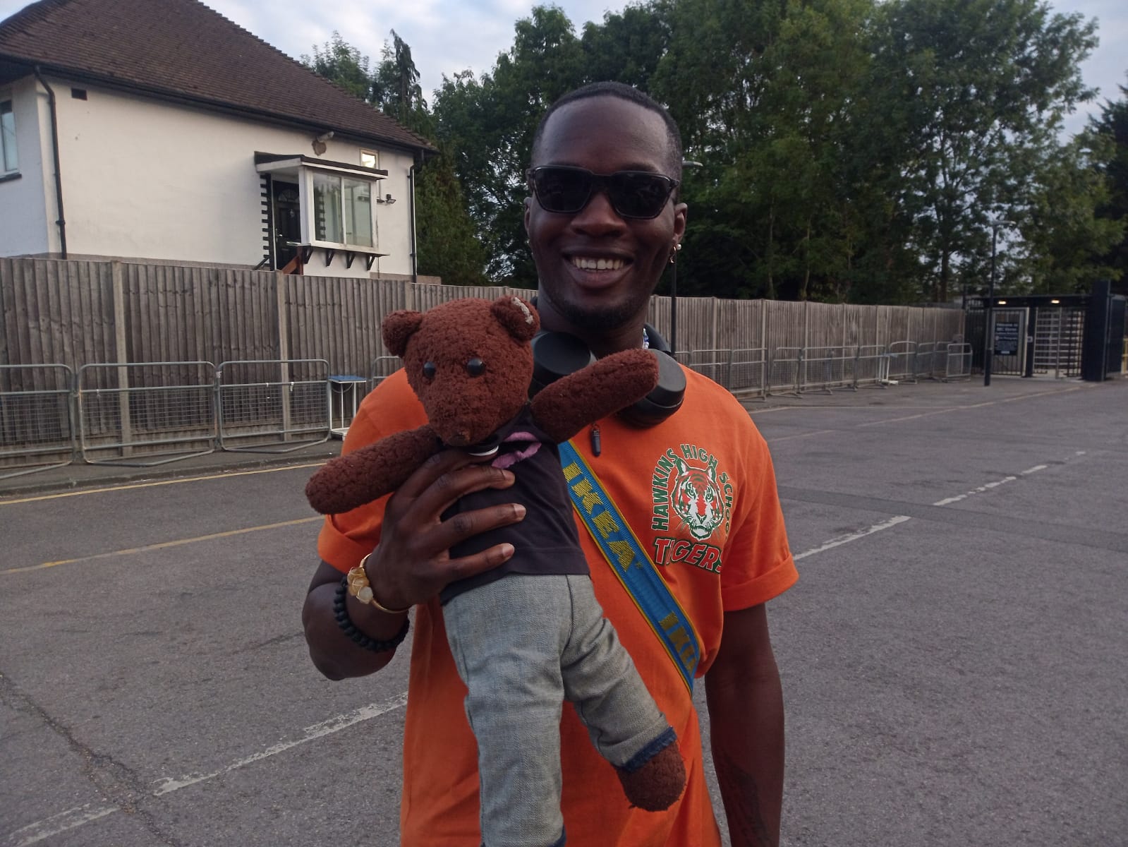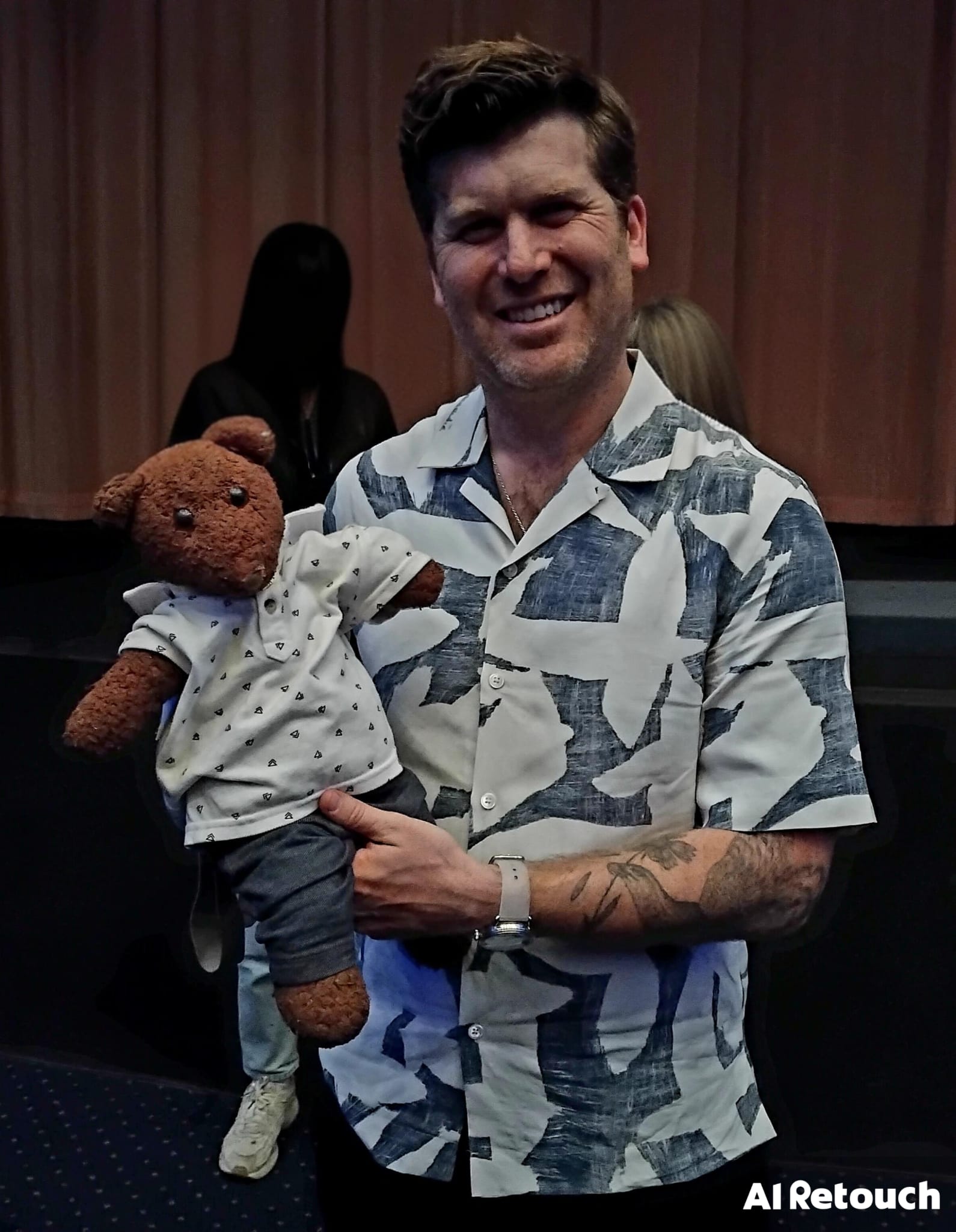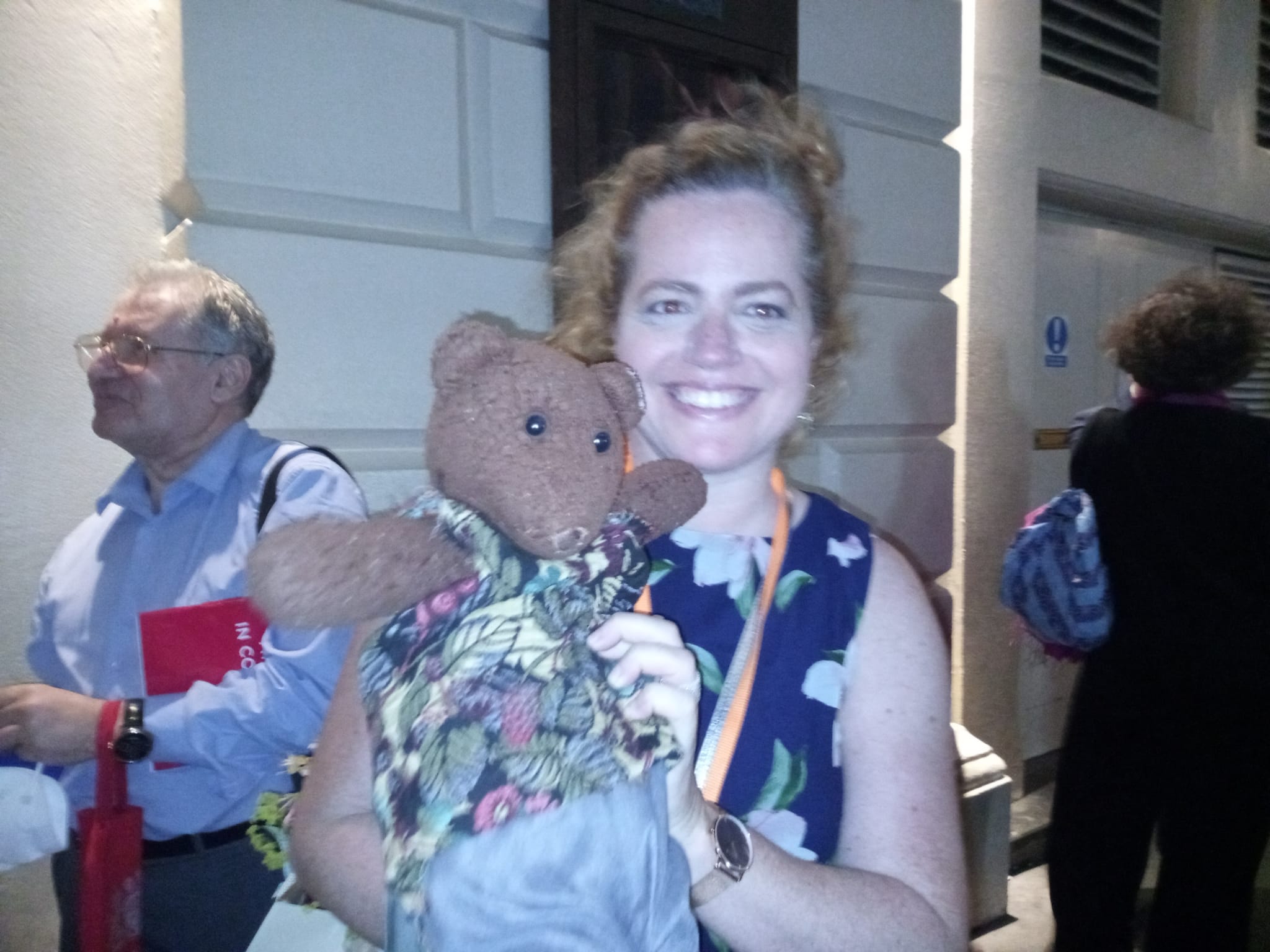 One surely imagines that these lovely human celebrities were very happy to meet such a smart, groovy, not to mention cool, dude, celebrity teddy bear and to hold him and take photos with him!