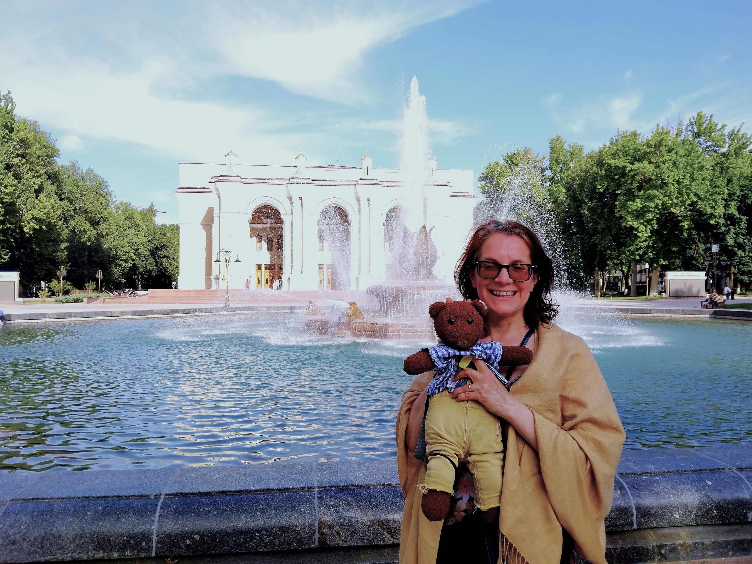Uzbekistan saw us visiting locations. In Tashkent we mostly enjoyed the Jazz festival. Samarkand was more interesting with it’s Registan Complex housing three magnificent madrasas (Islamic schools). The experience that filled my furry heart the most, though, was when we spent 3 nights with a lovely family in Boston Village with Couchsurfing.com hosts,. Here we enjoyed being part of the community by volunteering in a local kindergarten. We helped in the home too, making cheese balls with one of he host’s daughters, sorting raisins, and washing a rug by foot! Meals were prepared in handmade straw, mud (and maybe poo) kilns and fire stoves. And, for two of our three nights, we slept under the stars on the wood platform that meals were taken sat on.